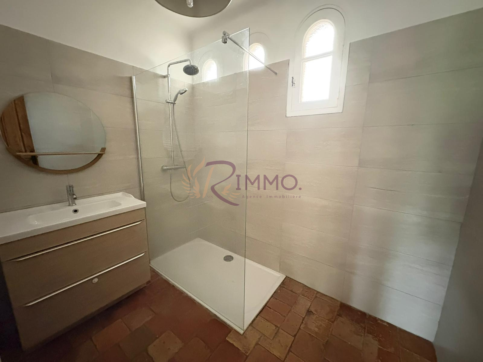 Une salle d’eau moderne entièrement rénovée et un WC indépendant complètent le rez-de-chaussée.